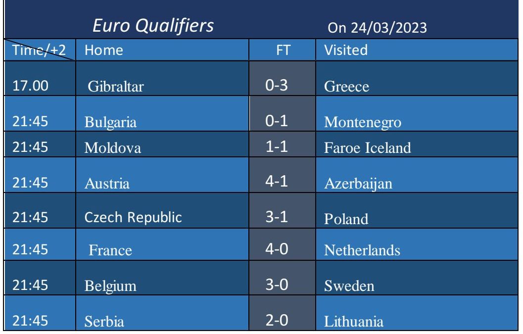 March 26, 2023 Follow us on Results of the 23rd European Qualifiers in 2023 Euro table results Comments